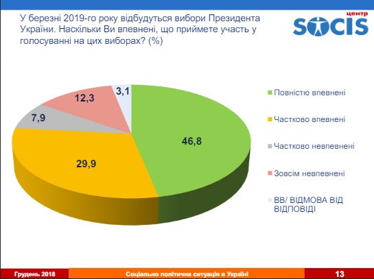 На вопрос о своей уверенности в том, что они примут участие в голосовании на следующих выборах президента 46,8% выразили такую уверенность, 29,9% сказали, что частично уверены, 7,9% отметили, что частично не уверены и 12,3% ответили, что совсем не уверены, что примут участие в голосовании.