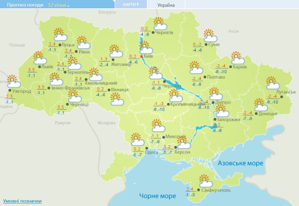 В Киеве 17 января облачно, но без осадков, дневное потепление до 0°, ночью еще поморозит - 5-7° ниже нуля.