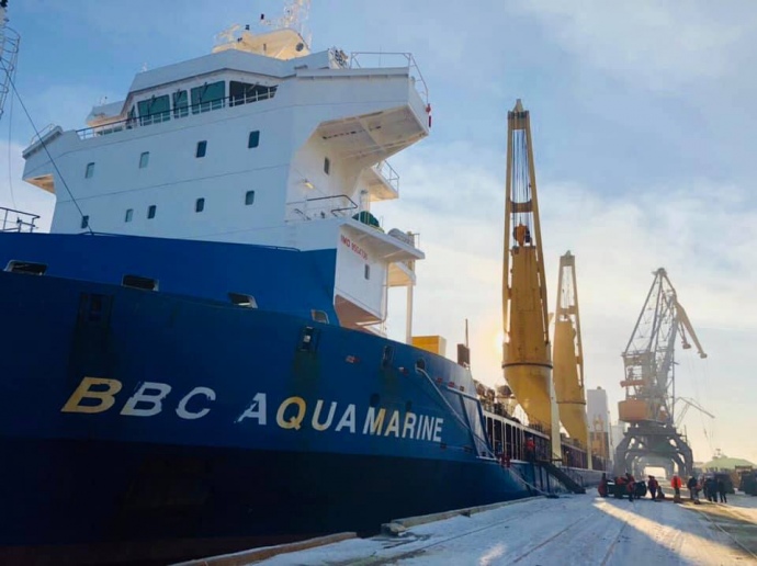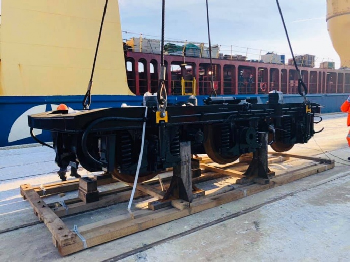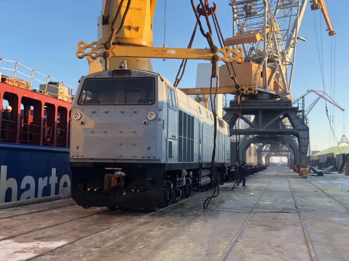 Из США теплоходом BBC Aquamarine в морской торговый порт Черноморск прибыли пять локомотивов TE33A Evolution.