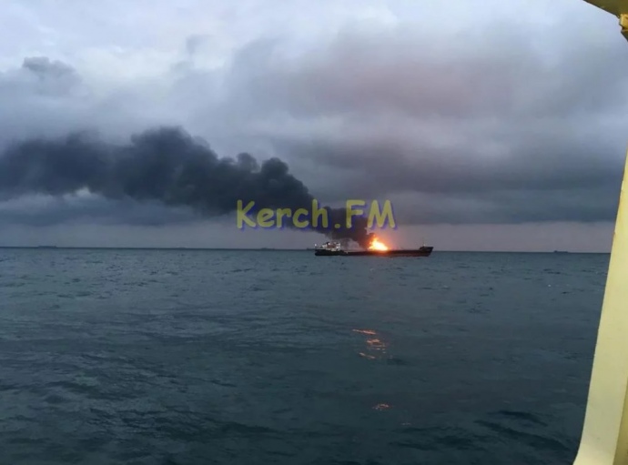 Два судна под флагом Танзании горят в районе Керченского пролива, на одном из них, по предварительным данным, произошел взрыв.
