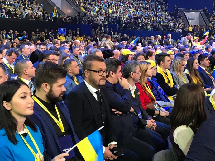 Съезд проходит под лозунгом "Верю в Украину". Так, перед началом съезда каждому участнику мероприятия раздали агитационные пакеты с сине-желтыми футболками, кепками, блокнотами с этим лозунгом.