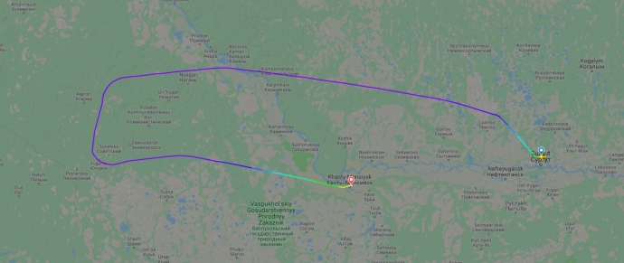 На данный момент самолет уже приземлился в аэропорту Ханты-Мансийска.