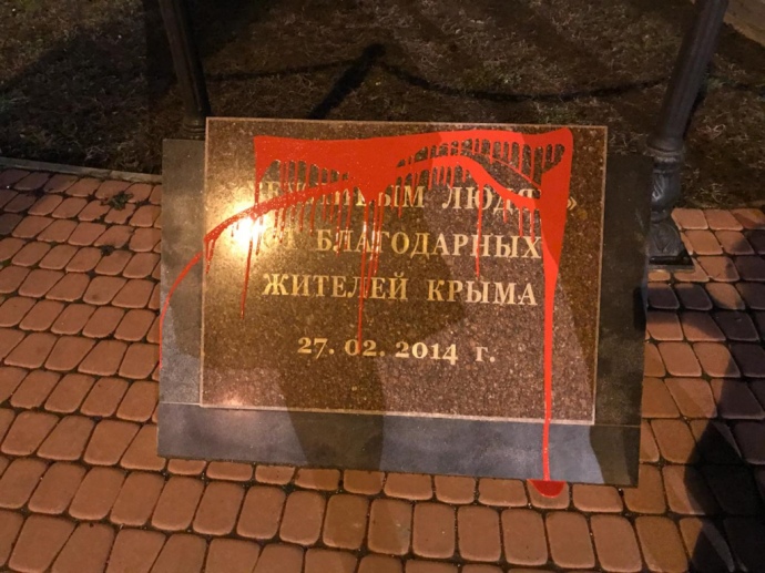 В Крыму осквернили памятник "вежливому" зеленому человечку