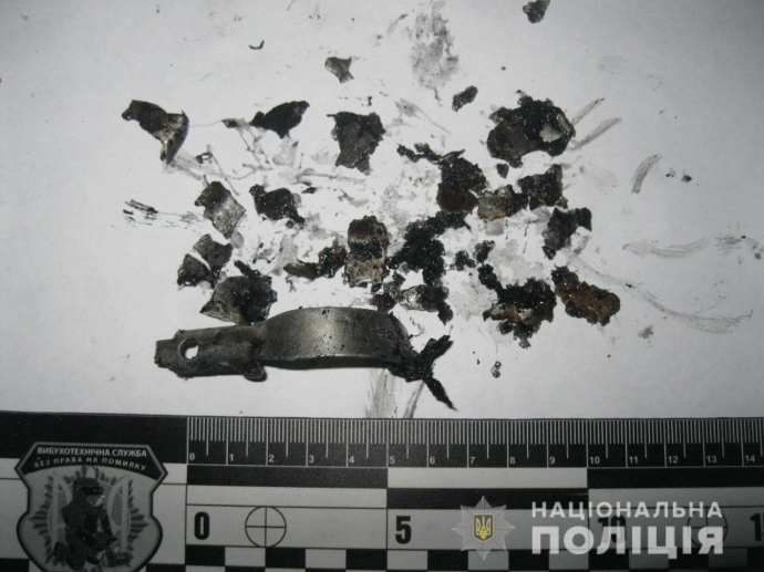 Полицейские изъяли с места происшествия металлический спусковой рычаг к запалу "УЗРГМ" и часть корпуса гранаты РГД-5.