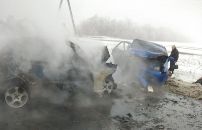Между Марьинкой и Курахово во вторник утром произошло лобовое столкновение двух легковых автомобилей, один из которых загорелся. На месте погибли 5 человек, еще 3 пострадали