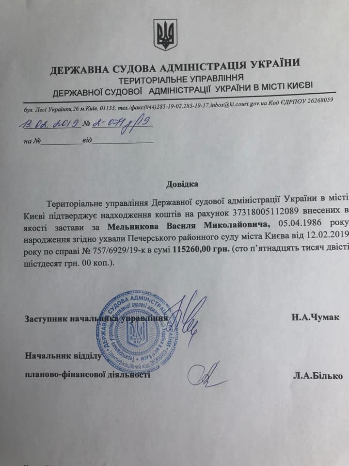 Позже другой кандидат в президенты Александр Вилкул тоже заявил, что внес 115 тысяч гривен залога за полицейского Мельникова.