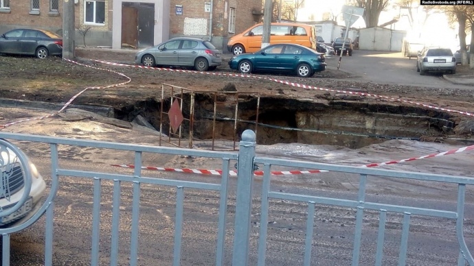 В Киеве провалилась дорога в направлении Севастопольской площади