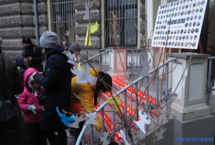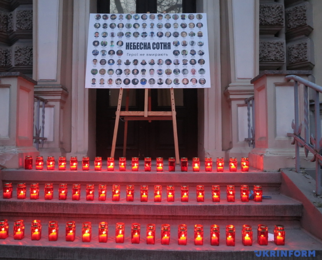 - В столице на пятую годовщину расстрелов в центре Киева в местах гибели участников Революции Достоинства зажгли "Лучи Достоинства".