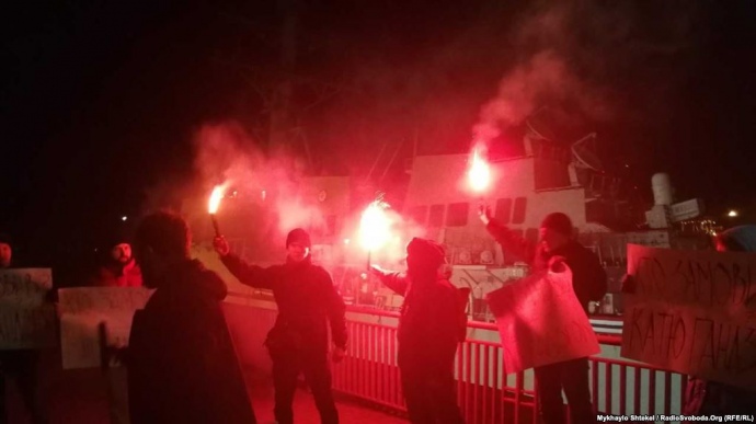 - Вечером 26 февраля несколько активистов провели акцию "Кто заказал Катю Гандзюк" на Одесском морском вокзале. Они развернули плакаты с надписями и подожгли несколько "файеров".