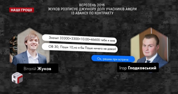 Еще 46,6 тысяч – забрали на двоих непосредственные организаторы поставки Игорь Гладковський (сын экс-заместителя секретаря СНБО) и его бизнес-партнер Виталий Жуков.