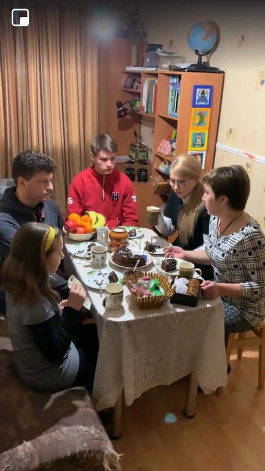 В тот же день Тимошенко посетила квартиру одной из бучанских семей. В память о себе она подарила торт и вазон.