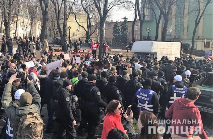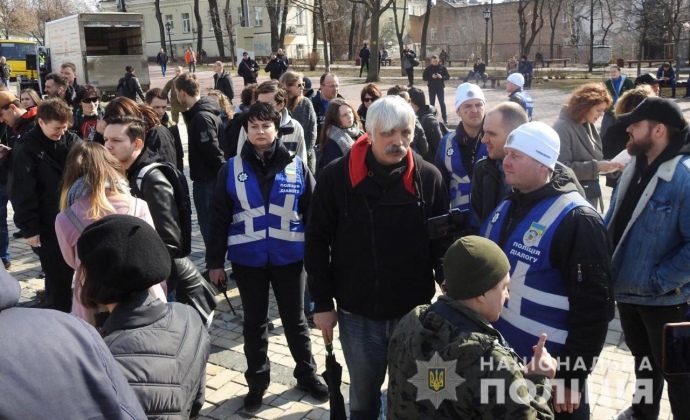 Представители полиции задержали трех мужчин перед Маршем женщин в Киеве.