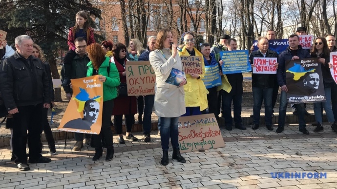 "Наша акция посвящена украинскому Крыму... Именно этот день и именно памятник Тарасу Григорьевичу мы выбрали для того, чтобы обратиться в первую очередь к крымчанам и поддержать их сегодня, потому что они продолжают свой протест и во время оккупации", - сказала в выступлении на акции координатор Крымской правозащитной группы Ольга Скрыпник.