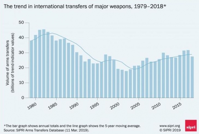 Об этом говорится в отчете, обнародованном 11 марта Стокгольмским международным институтом исследований мира (SIPRI), сообщает "Европейская правда".