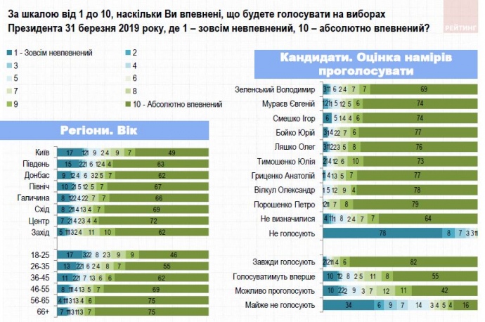 83% украинцев в той или иной мере декларируют свою готовность принять участие в выборах президента 31 марта 2019 года.