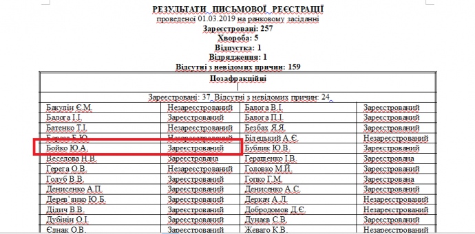 Также народный депутат Бойко был зарегистрирован и на послеобеденном заседании сессии ВР.