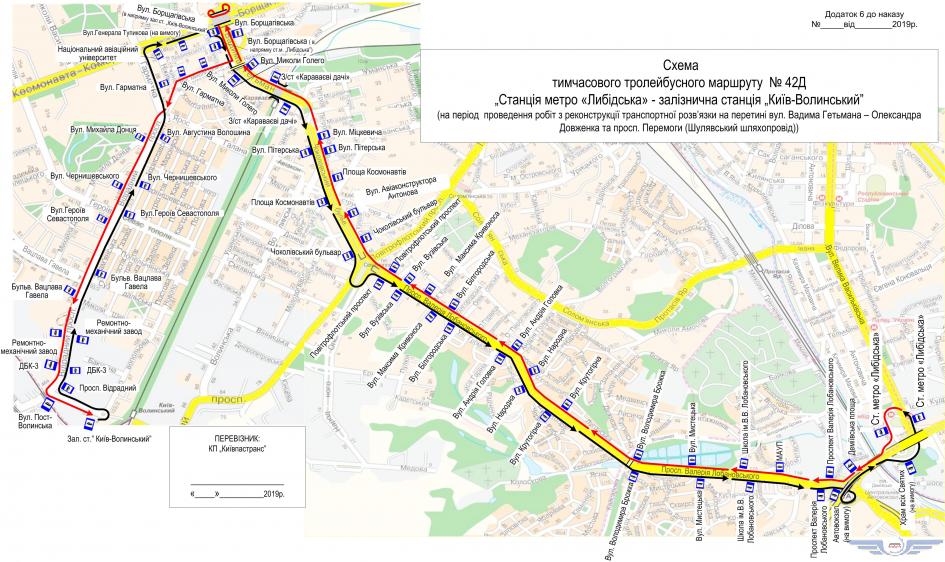 С 17 марта на время реконструкции Шулявского путепровода в работу наземного общественного транспорта вносятся изменения, движение троллейбусов маршрутов №№ 22, 27 и 42 закрывается.