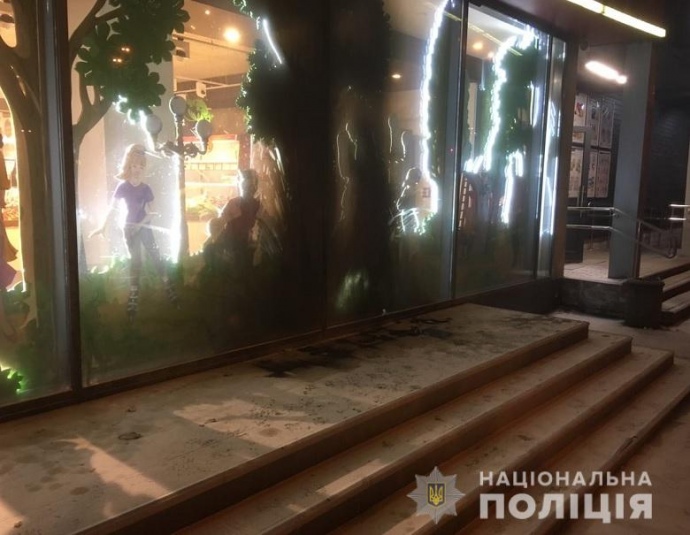 "Двое неизвестных бросили в витрину магазина емкость с зажигательной смесью и скрылись", - рассказала пресс-секретарь столичной полиции Оксана Блищик.