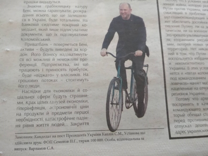 Вместе с тем в исходных данных самой газеты отмечается, что ее заказчиком является кандидат в президенты Сергей Каплин.