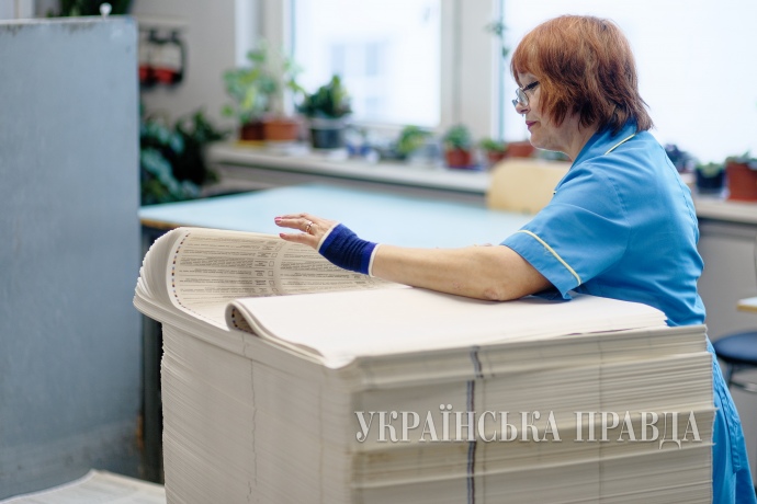 По словам директора полиграфкомбината "Украина" Юрия Онищенко, с 8 марта коллектив предприятия работает в круглосуточном режиме семь дней в неделю. Печать бюллетеней продлится до 24 марта.