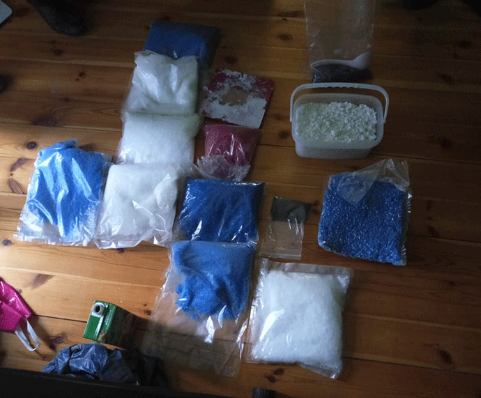 Во время проведения санкционированных обысков в частном доме на столичных "Осокорках" правоохранители изъяли оборудование для изготовления наркотиков, более 10 килограммов психотропного вещества альфа PVP, 5 килограммов мефедрона, более 5 килограммов амфетамина.