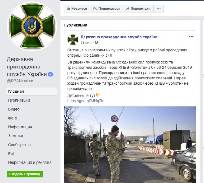 Стоит отметить, что впоследствии упоминание о КПВВ "Золотое" было удалено со страницы ГПСУ в Facebook и сайта без каких-либо комментариев.