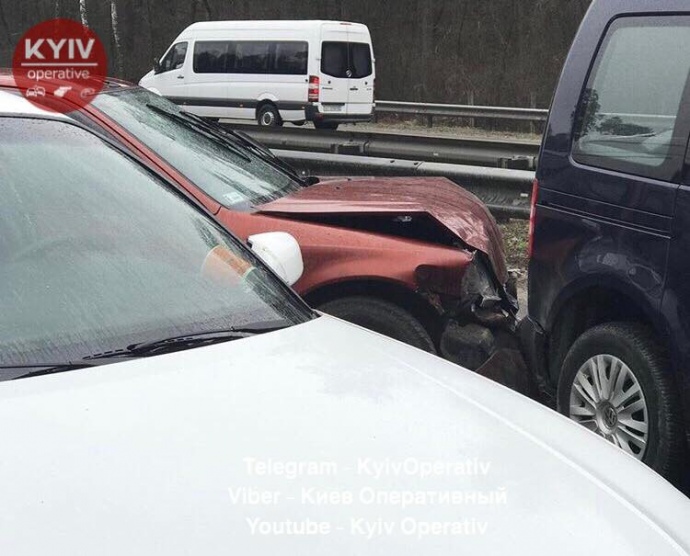 На Бориспольском шоссе по дороге в Киев в масштабное Дорожно-транспортное происшествие попало 9 автомобилей.
