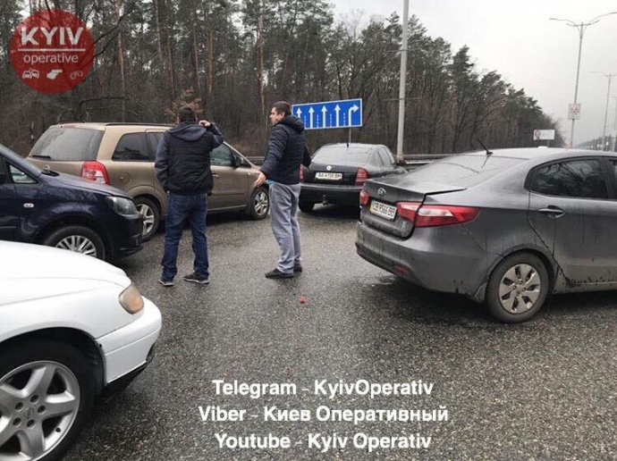 Первая ДТП по дороге из Борисполя в направлении Киева произошла в 8.50 утра с участием автомобиля KIA и Hyundai. Во время того, как участники ДТП оформлялись по европротоколу, произошло еще одно приключение.