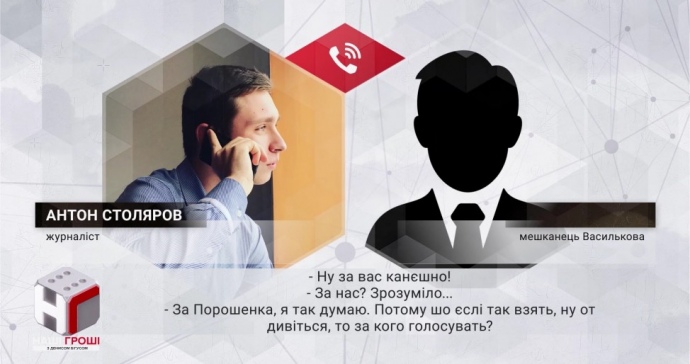 "В начале марта, когда деньги начали приходить, мы снова пообщались с людьми по телефону от имени представителей горисполкома. На вопрос, за кого они будут голосовать на выборах, большинство отвечали фразой "Как и договаривались", что может свидетельствовать о подкупе. Один житель Василькова озвучил также имя конкретного кандидата – за Петра Порошенко", – говорится в расследовании.