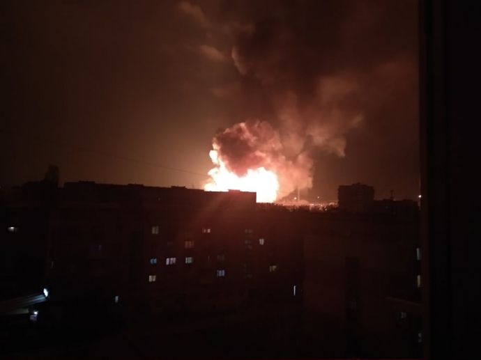Жители микрорайона Коваливки сообщают, что после взрывов начался пожар вблизи улицы Киевской.
