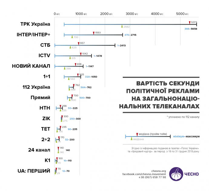- В начале января ЧЕСНО писал, что кандидаты на пост президента Украины будут тратить на секунду политической рекламы на телевидении в 5658 гривен, а минутный ролик обойдется кандидатам более чем за 300 тысяч гривен.