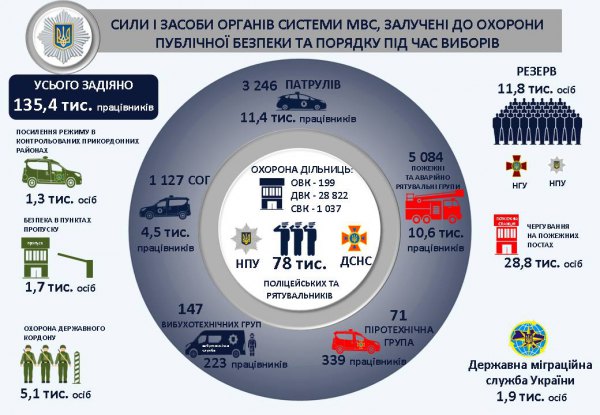 В день выборов 135 400 сотрудников МВД и 78 000 полицейских и спасателей будут охранять волеизъявление людей на участках в Украине.