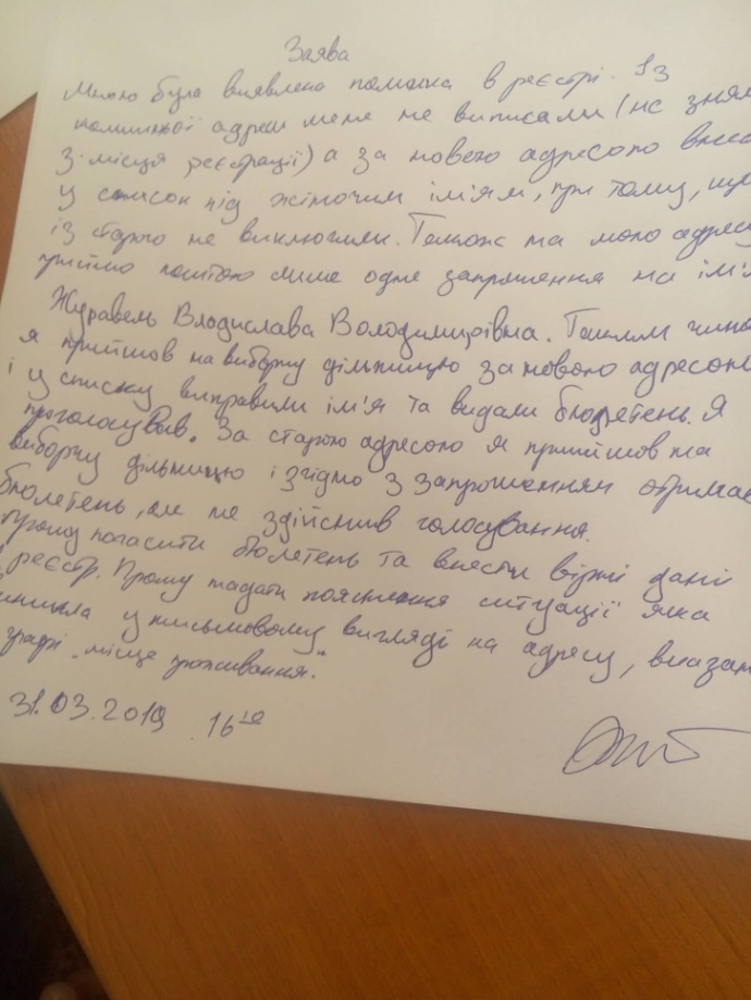 "Ошибка члена УИК заключалась в том, что она не проверила его место регистрации. Этот член УИК представляет кандидата Данилюка. Ситуацию хотят как-то уладить, но дело в том, что он успел расписаться за бюллетень. Соответственно сейчас ищут, как решить эту ситуацию", – отмечает наблюдательница.
