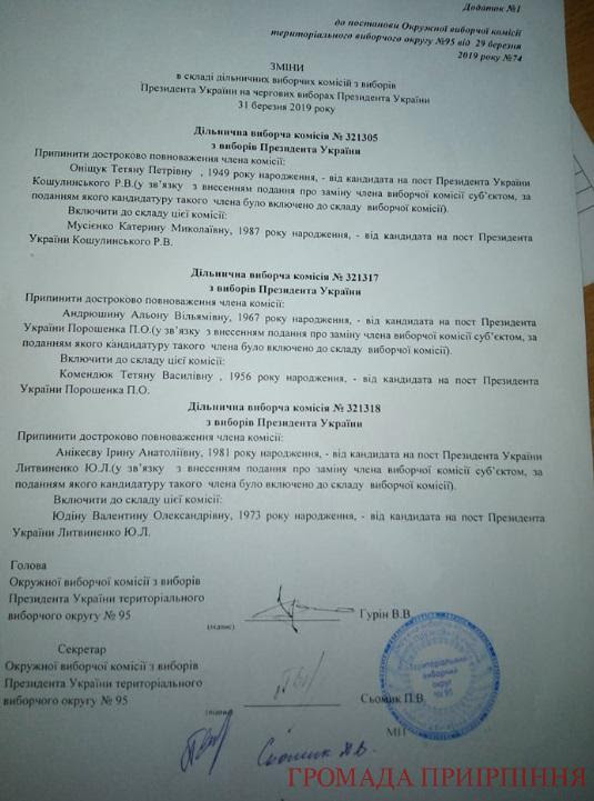 Кроме того, "ЧЕСНО" сообщает, что в Коцюбинском два представителя кандидата Петра Порошенко пришли во время голосования на участок и сообщили, что они новые члены УИК.
