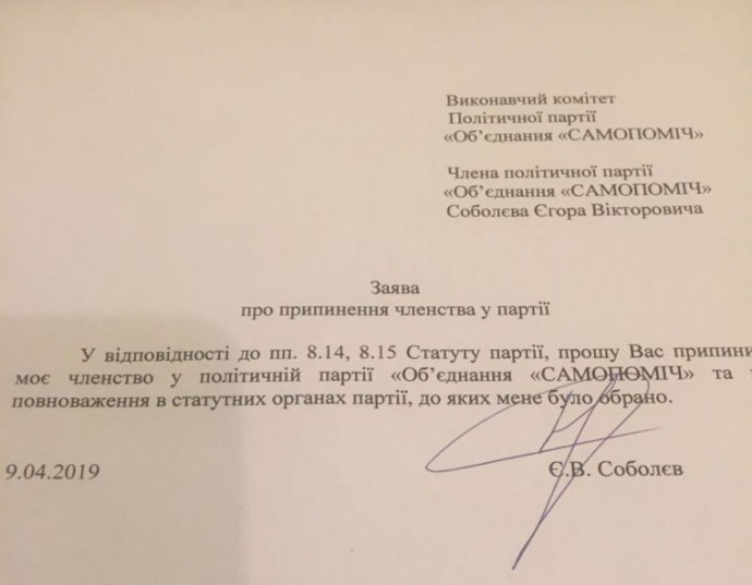 В то же время в своем Facebook Соболев пояснил, что не будет выходить из фракции "Самопомич".