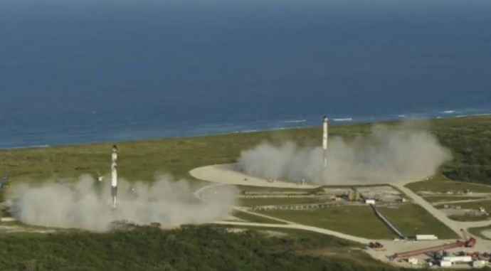 Две из трех ступеней ракеты вернулись на стартовые площадки, а третья, основная,, центральная ступень - на беспилотный корабль в Атлантическом океане.