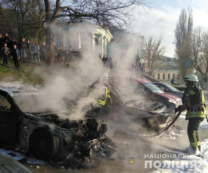 На Владимирском спуске в Печерском районе Киева неизвестный поджег автомобиль.