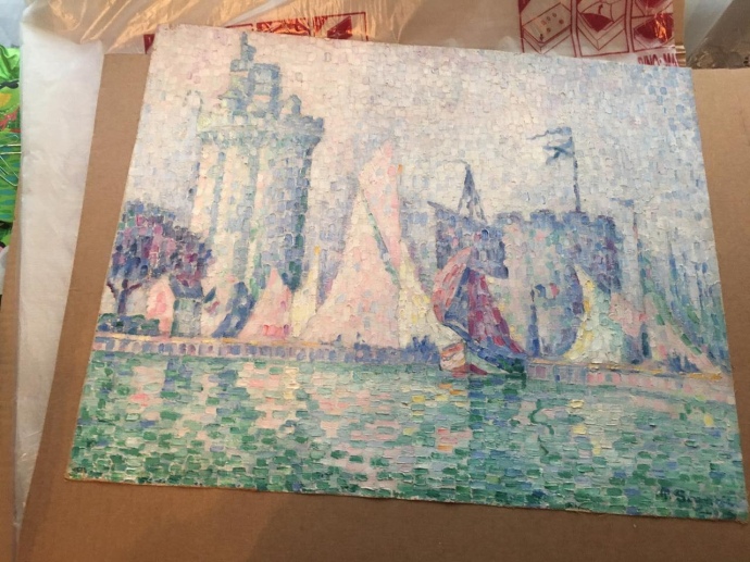 Также в ходе обысков изъяли картину, которая по предварительным данным может быть похищенной из музея в городе Нанси во Франции работой Поля Синьяка стоимостью 1,5 млн долларов.