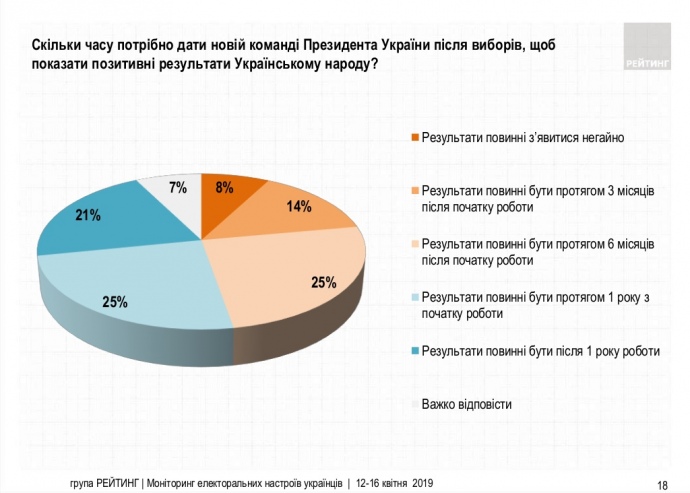 Половина опрошенных украинцев считают, что новой команде президента Украины нужно дать не меньше года, чтобы показать положительные результаты работы.