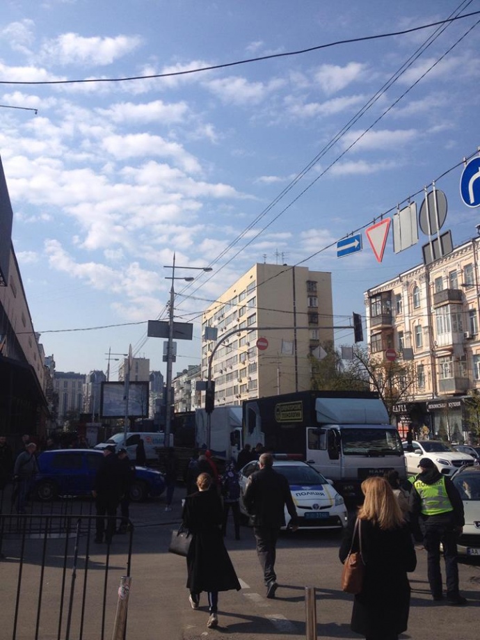 Также перекрыто движение транспорта по Большой Васильковской от Деловой до Саксаганского. Там устанавливают рамки посреди улицы, как во время финала Лиги чемпионов.