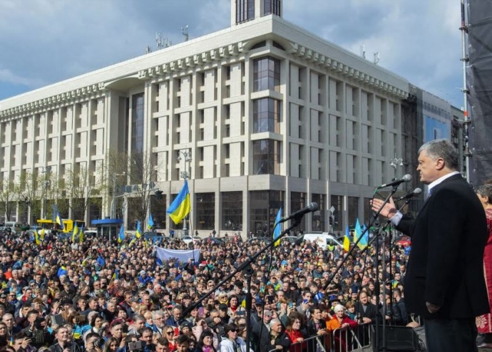 - 19 апреля действующий президент Петр Порошенко пришел на Майдан Независимости, где установлена сцена, с которой перед тем выступали артисты, министры и спикер Верховной Рады Андрей Парубий.
