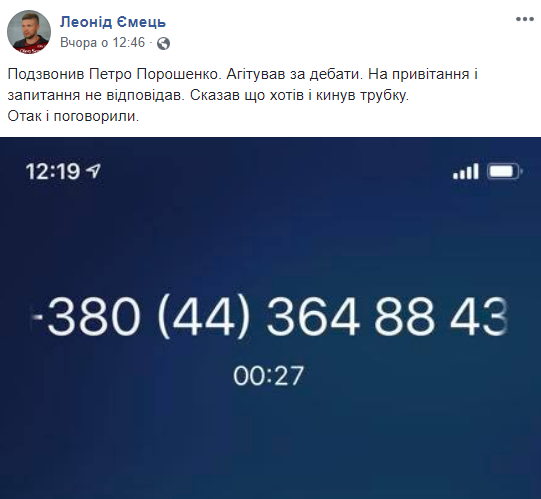 В частности, 19 апреля, "звонок от Порошенко" получил один из аналитиков движения, который не оставлял партии своего номера телефона.
