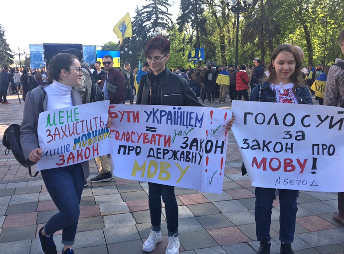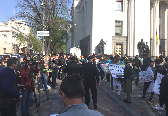 Утром 25 апреля возле Верховной Рады проходит акция в поддержку принятия закона об украинском языке №5670-д.