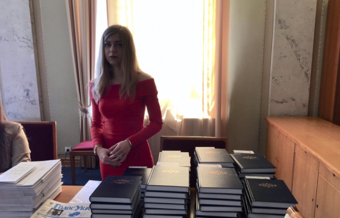 В кулуарах Верховной Рады народным депутатам в чистый четверг дарят Библии от имени депутата от фракции "Народный фронт".
