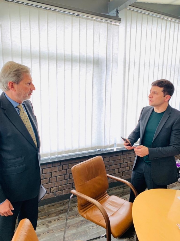 В свою очередь, пресс-служба Зеленского сообщила, что еврокомиссар Ган пригласил новоизбранного президента Украины совершить свой первый визит в Брюссель.