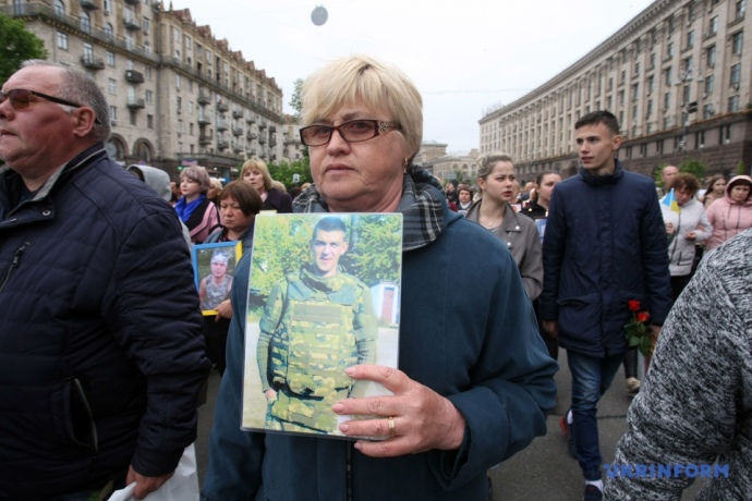 В центре Киева прошли маршем родственники погибших на Донбассе воинов