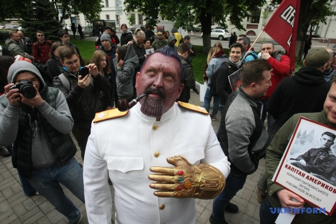 В центре Киева 100-150 человек приняли участие в акции "Бессмертный Грут" в противовес маршу "Бессмертного полка", приуроченному ко Дню Победы.