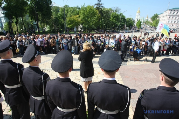 Как сообщает Укринформ, в мероприятии принимают участие около 300 человек, большинство из них - это матери погибших воинов, несущие портреты.