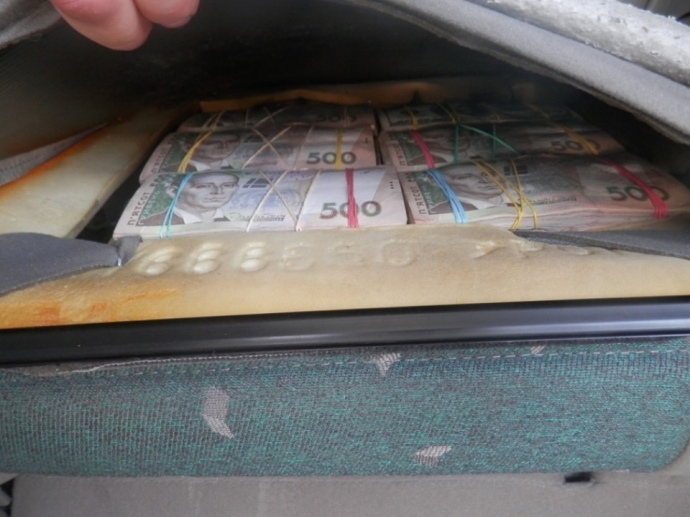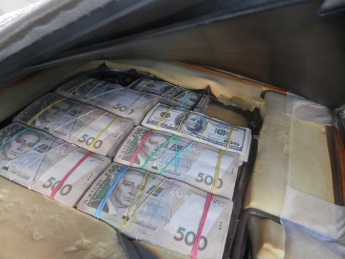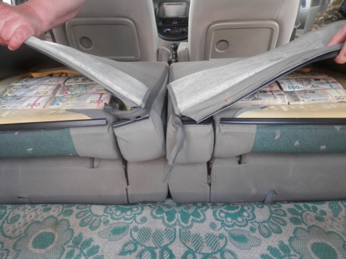 Сообщается, что с обустроенных тайниках под обшивкой сидений и панели приборов правоохранители изъяли 3 миллиона 400 тысяч гривен, более 50 тысяч долларов США и около тысячи евро.