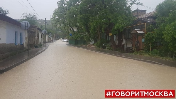 По сообщению радиостанции, селевые потоки сошли на часть города у горы Тепе-Оба, их причиной стал дождь. В результате часть дорог затопило водой с глиной и грязью.